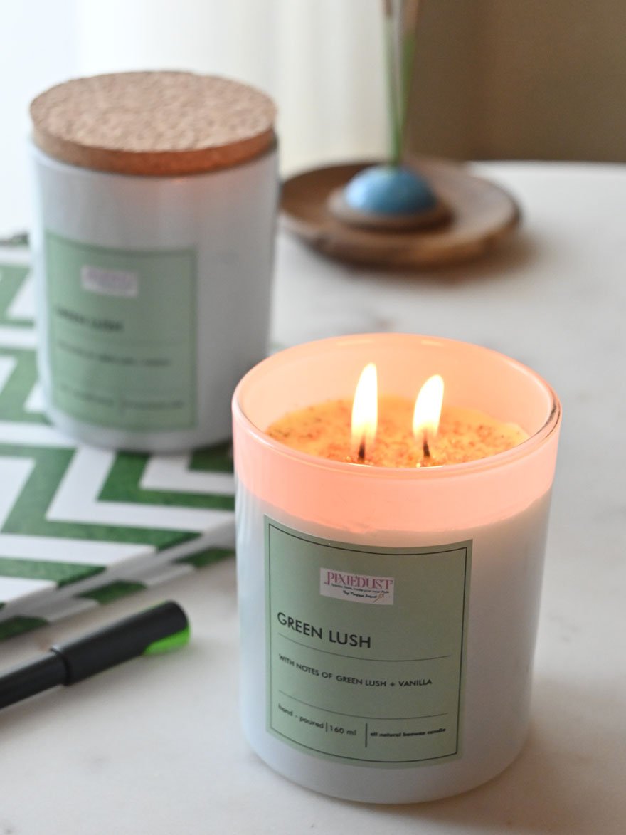 GREEN LUSH 1 Handcrafted all Natural 160 ml BeeWax candle with Green Lush + Vanilla Aromatheraphy.