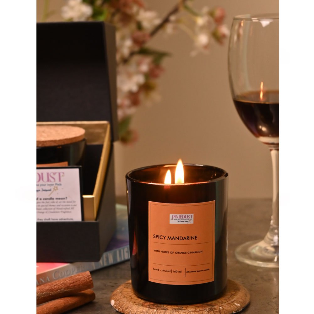 SPICY MANDARINE includes 1 Handcrafted all Natural 160 ml BeeWax Candle with Orange Cinnamon + Vanilla Aromatherapy.