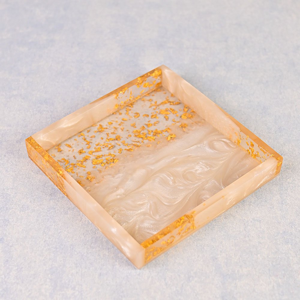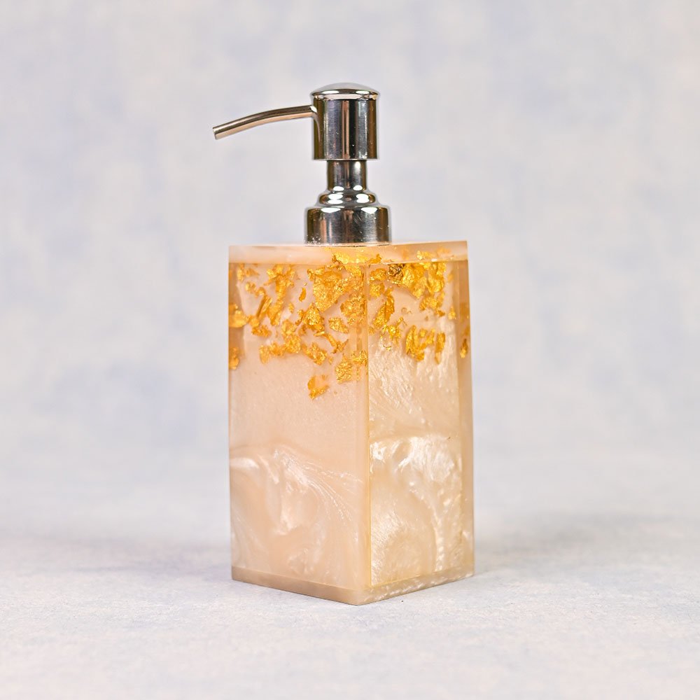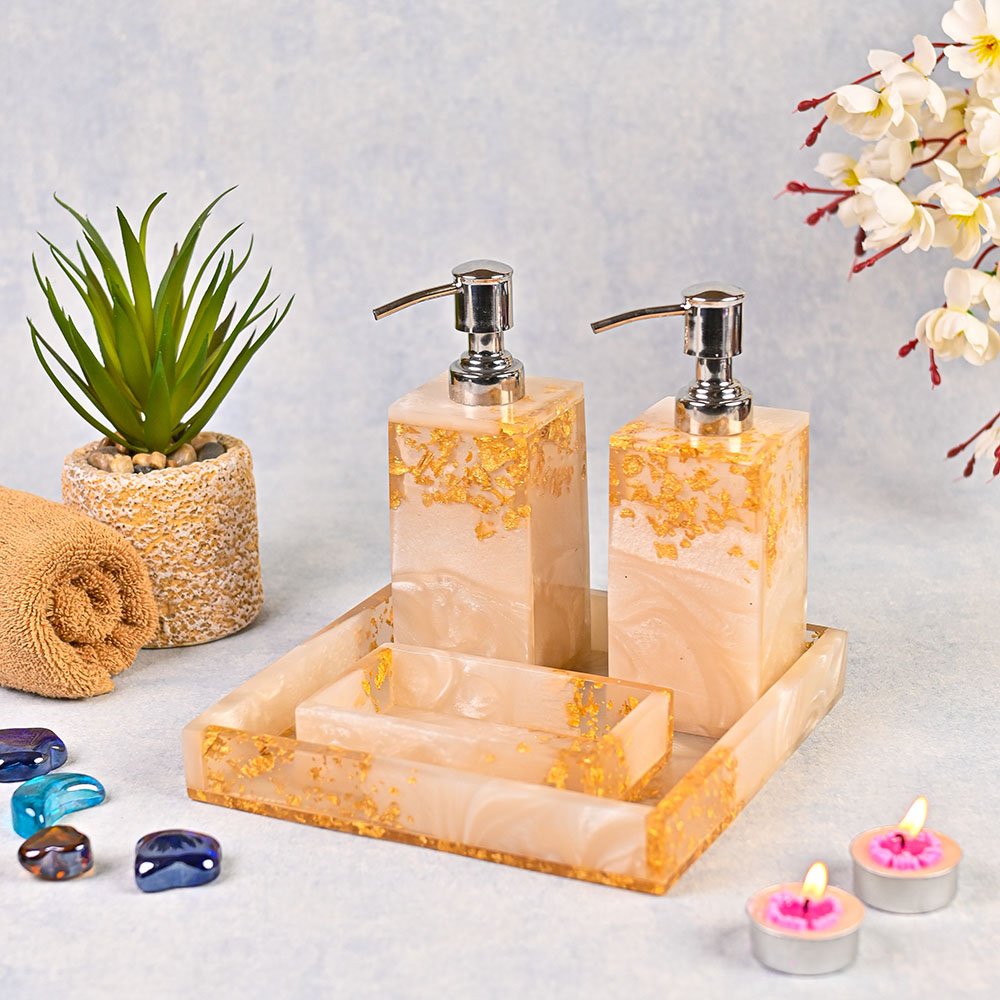 Elevate your Bath Ritual Experience with our classy & luxurious handcrafted Pearl White Resin Bath Set – with gold dust